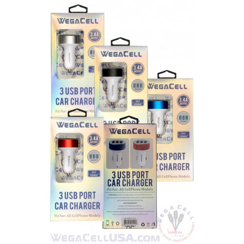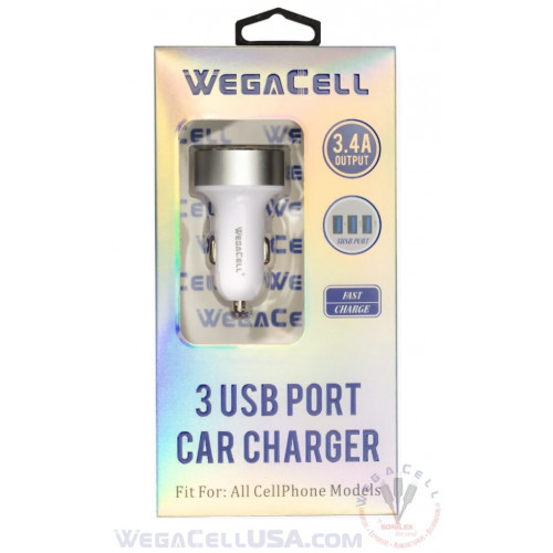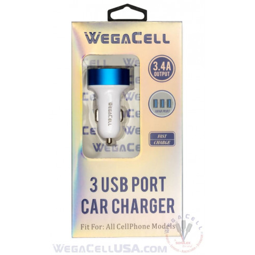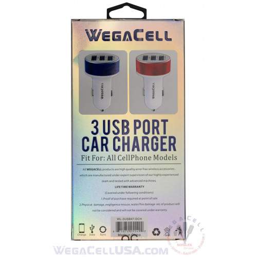 Universal Dual Port Fast Charging USB - Car Charger - WegaCell: WL-3USB47-DCH