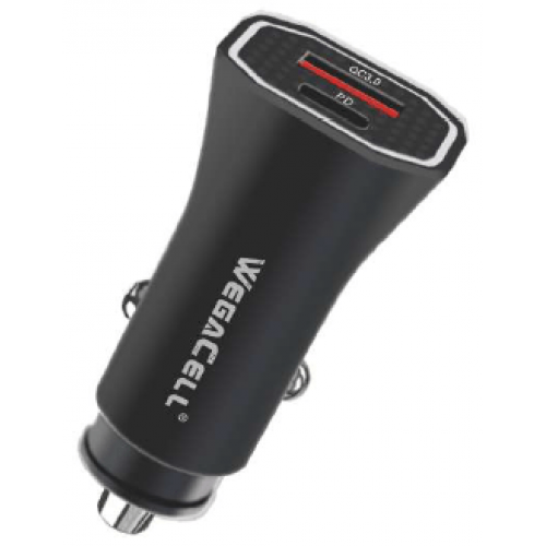 Universal Dual Port Fast Charging USB C-USB Car Charger. WegaCell: WL-118PD-DCH