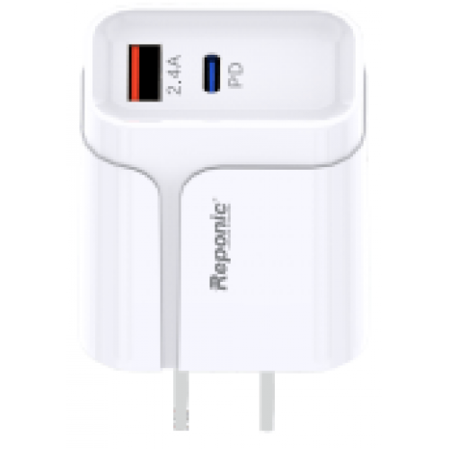 Universal Dual Port Fast Charging USB- USB C Home Wall Charger - Reponic: RP-HC343PD