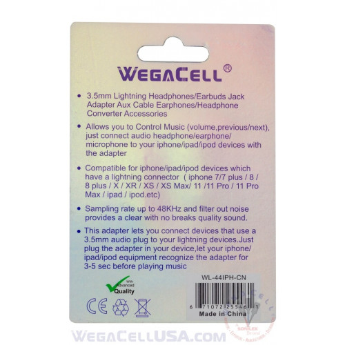 Apple iPhone Lightning to 3.5 MM Aux Adapter - WegaCell: WL-44IPH-CN