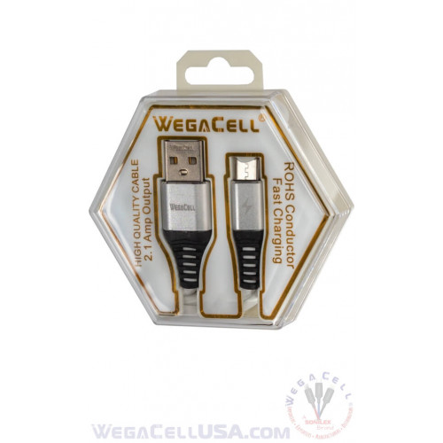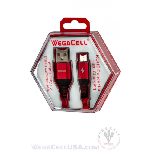 Android V8 Micro USB Braided Fast Charging 3 Ft TPE Data Cable - WegaCell: WL-3CBL52-MCR