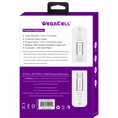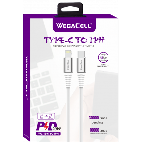 Apple Compatible iPH USB C-Lightning TPE Data Cable - WegaCell: WL-180TYC-IPH