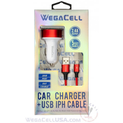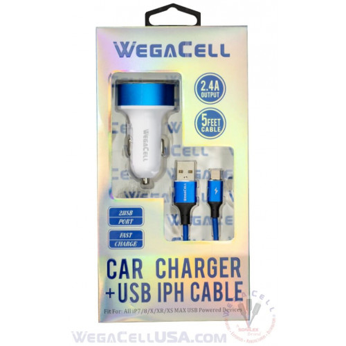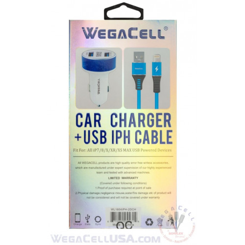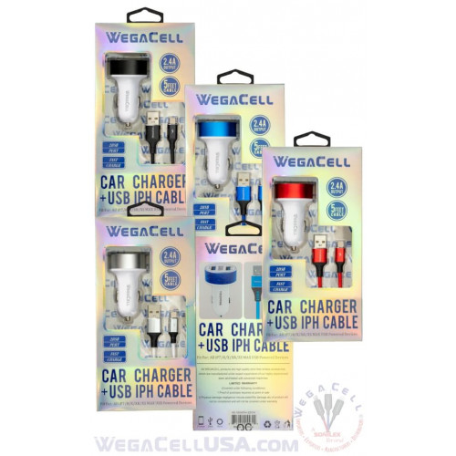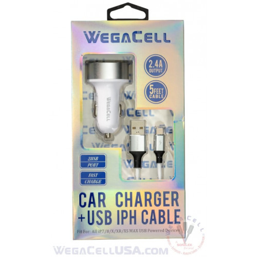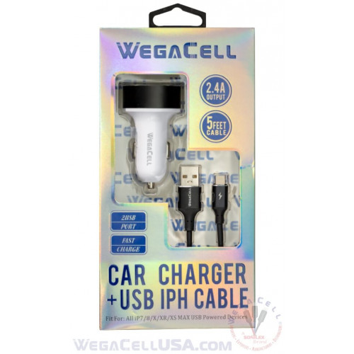 Apple Compatible Universal Dual Port Car Charger Lightning Cable Combo - WegaCell: WL-1604IPH-2DCH