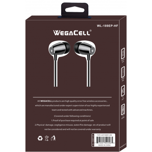 In-Ear Stereo Earphone Noise Isolating Heavy Bass - WegaCell: WL-189EP-HF