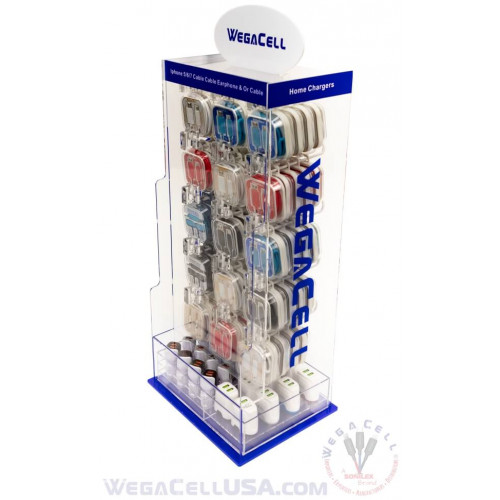 Counter Display Rack 103 pcs. Model No. WegaCell: WL-9900AS. Display Products: iPhone Data Cable Micro Data Cable Type C Data Cable Aux Audio Cable Earphones Car Charger Home Charger