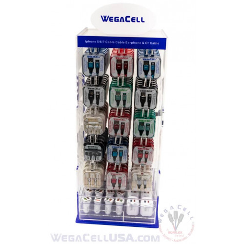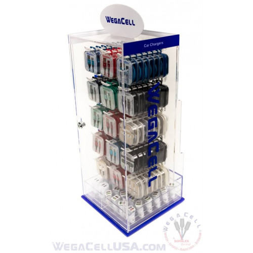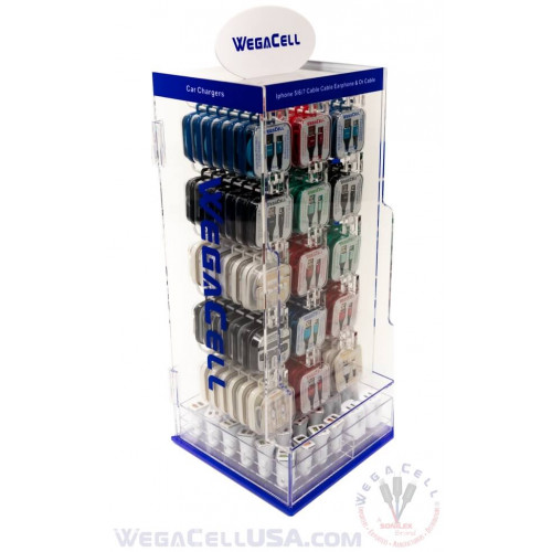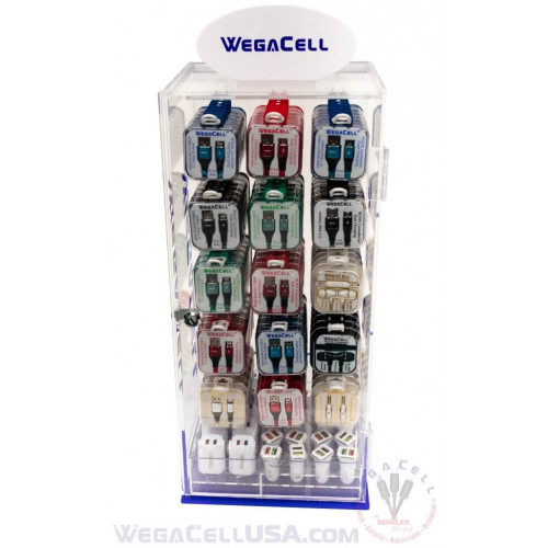 Lockable Counter Display Rack 139 pcs. Model No. WegaCell: WL-9903ASD. Display Products: iPhone Data Cable Micro Data Cable Type C Data Cable Aux Audio Cable Earphones Car Charger Home Charger