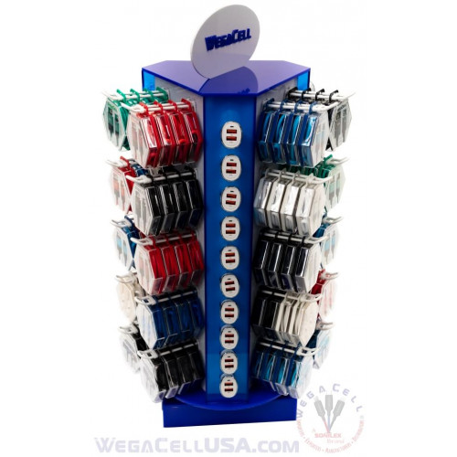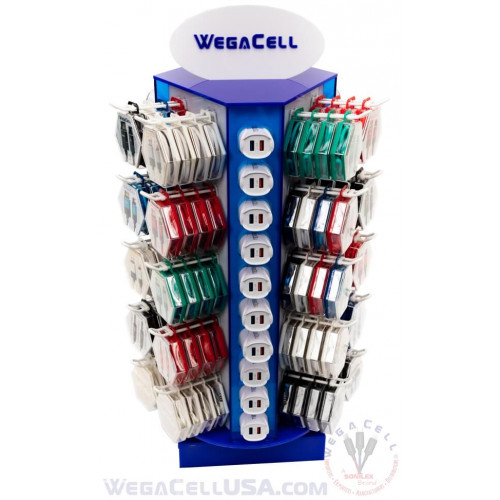 Rotating LED Counter Display Rack 150 pcs. Model No. WegaCell: WL-9908AS. Display Products: iPhone Data Cable Micro Data Cable Type C Data Cable Aux Audio Cable Earphones Car Charger Home Charger