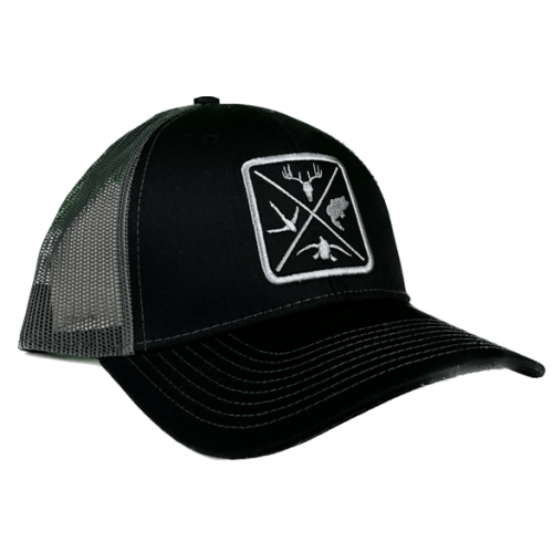 Embroidery patch outdoor series black logo. One size fits all, stretch fit closure.