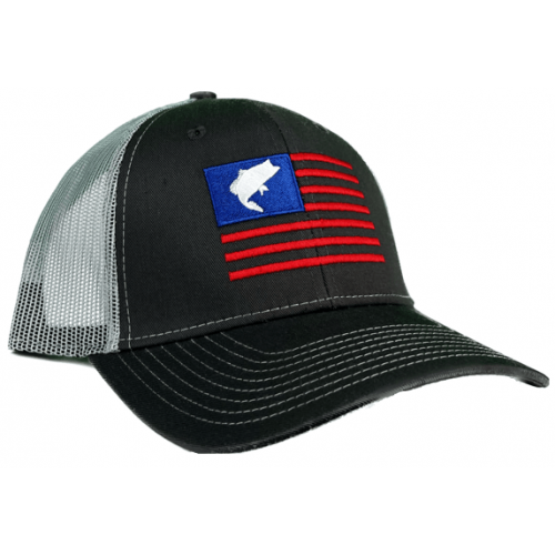 Embroidery patch bass flag red/white/blue logo. One size fits all, stretch fit closure.