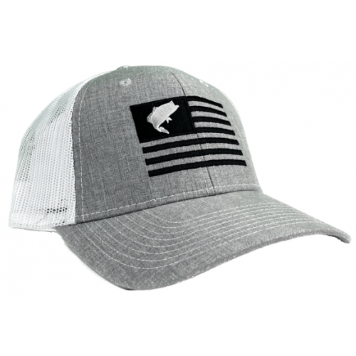 Embroidery patch bass flag cap. One size fits all, stretch fit closure.