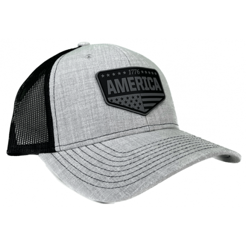 Rubber patch american flag home plate black/gray logo. One size fits all, stretch fit closure.