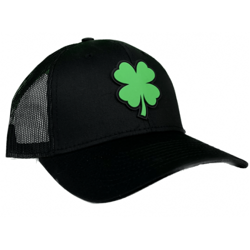 Rubber patch 4 leaf clover black/gray logo. One size fits all, stretch fit closure.
