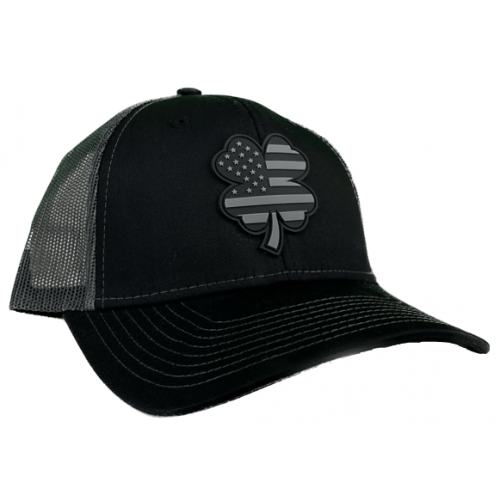 Rubber patch 4 leaf clover black/grey flag logo. One size fits all, stretch fit closure.