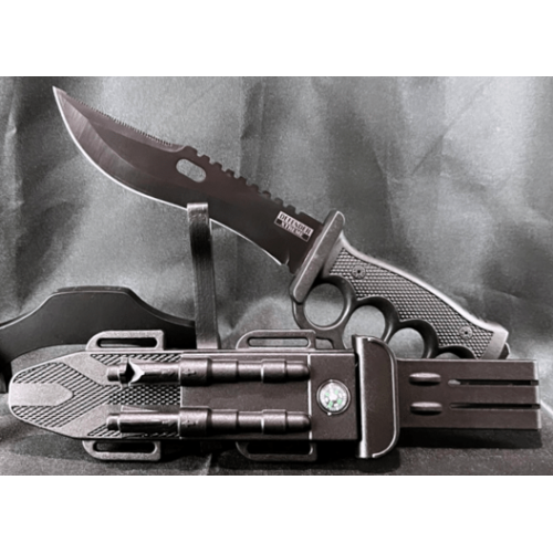 13 " H /K Black blade wide and black plastic handle and sheath with fire starter