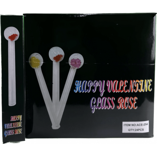 6" Happy Valentine Glass Rose is a glass tube with rose flower inside. 24 pc in a display.