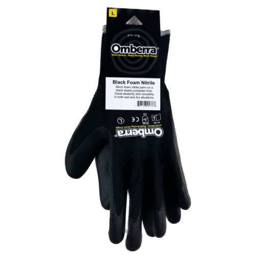 Micro foam nitrile palm on a black elastic polyester liner. Great dexterity and versatility in both wet and dry situations. 12 PRS gloves per bundle.