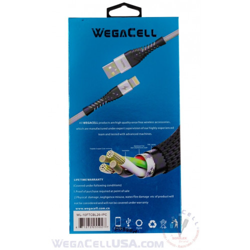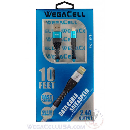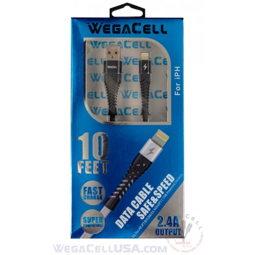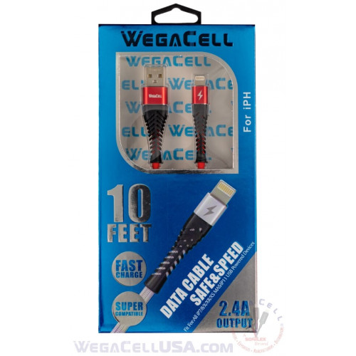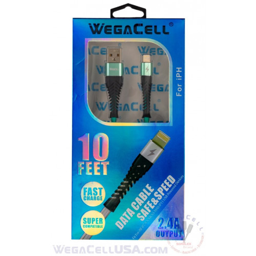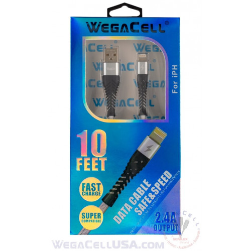 Apple Compatible Fast Charging 10 Ft Lightning TPE Data Cable - WegaCell: WL-10FTCBL26-IPH