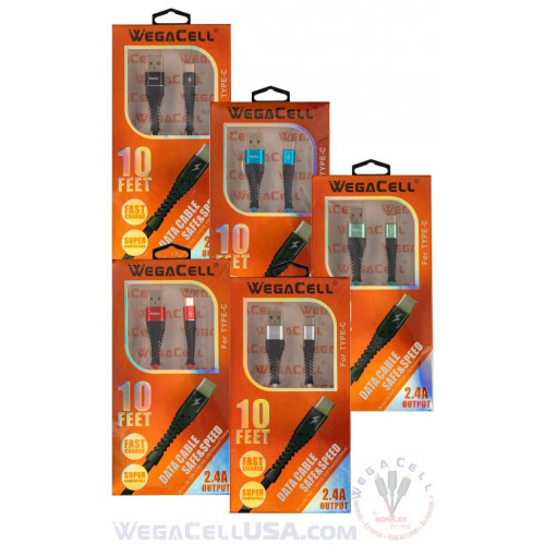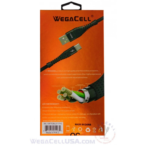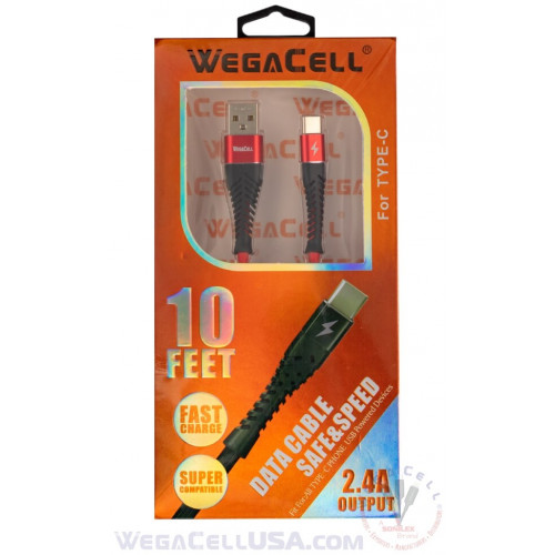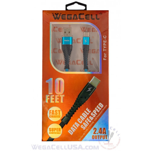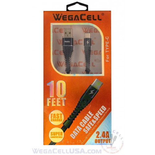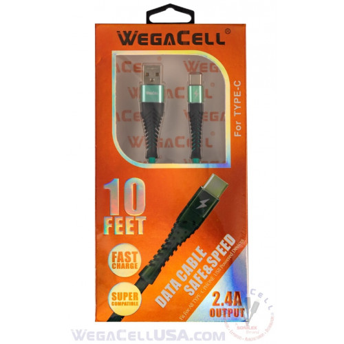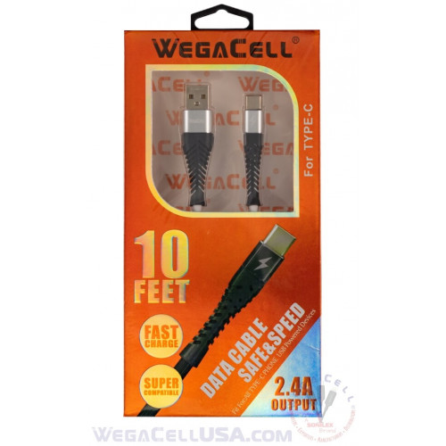 Android Type C USB Braided Fast Charging 10 Ft TPE Data Cable - WegaCell: WL-10FTCBL27-TYC