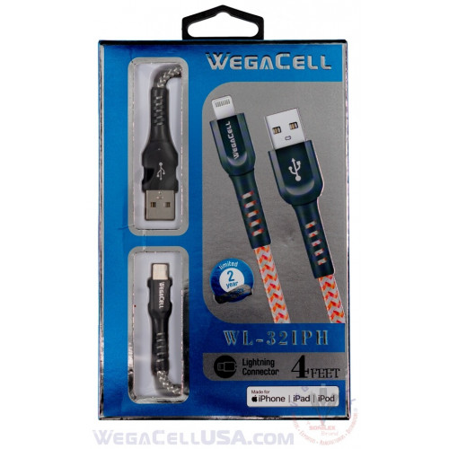 Apple Certified MFI iPhone Fast Charging 4 Ft Lightning Cable - WegaCell: WL-32IPH
