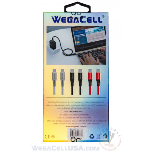 Android Type C USB -Type C Fast Charging 6 Ft TPE Data Cable - WegaCell: WL-74TYC-TYC