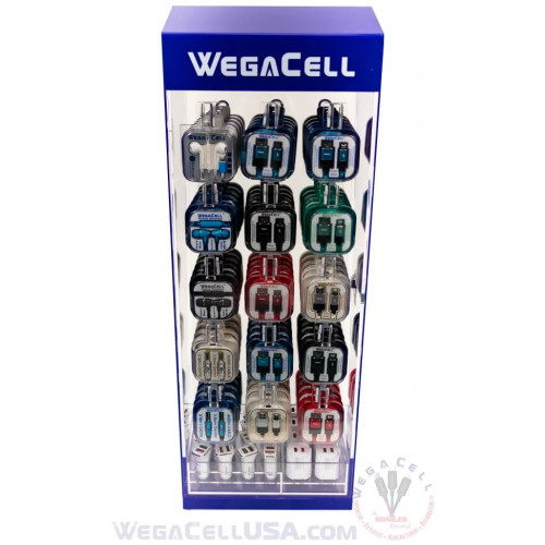 Counter Display Rack 114 pcs. Model No. WegaCell: WL-9917AS. Display Products: iPhone Data Cable Micro Data Cable Type C Data Cable Aux Audio Cable Earphones (iPh) Earphone Car Charger Home Charger